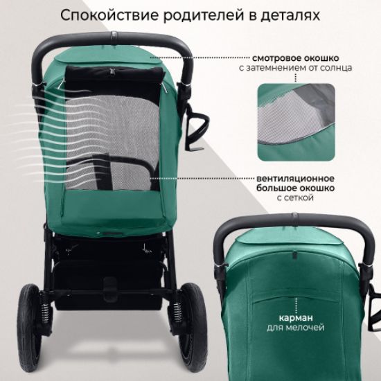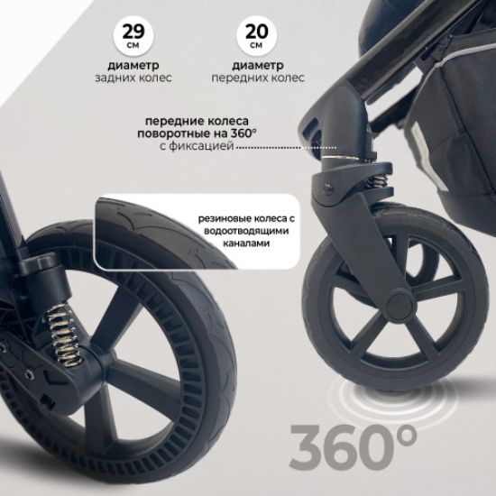 •  Большие не прокалываемые колеса с протекцией, пружинами и регулируемой подвеской позволят мягко и комфортно преодолеть любое бездорожье не только во время прогулок в городе, но и на природе. Поворотные передние колеса фиксируются в прямом положении.