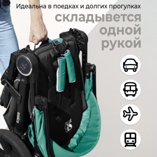 •  Система сложения одной рукой. Коляску удобно хранить и перевозить благодаря простому механизму сложения. В сложенном виде устойчиво стоит без опоры, не пачкая обивку и ручку.