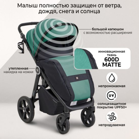 •  Чехлы коляски изготовлены из инновационной ткани 600D MATTE, не продуваемая, непромокаемая, солнцезащитная покрытие UPF50+.