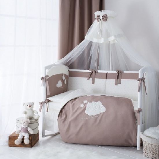 Балдахин из вуали полностью накрывает детскую кроватку, обеспечивая надежную защиту и создавая в спальне волшебную атмосферу уюта.