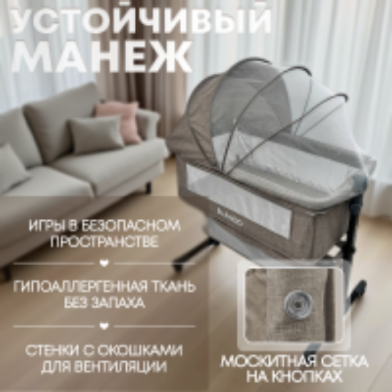 BubaGO Meluna 5 в 1 — это уютная колыбель, приставная кроватка, манеж и пеленальный столик в одном. Она создана, чтобы малыш чувствовал заботу и безопасность, а родители могли наслаждаться каждой минутой вместе, зная, что всё необходимое всегда под рукой.