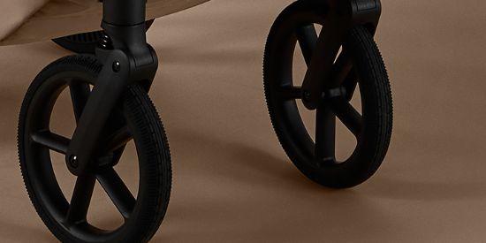 Большие колеса, изготовленные по технологии ETPU, являются гибкими и износостойкими, что приводит к комфорту вождения. Коляска стабильно передвигается по тротуарам, лодыжкам и более неровным поверхностям, поэтому Inspiro хорошо находит „в реальной жизни”.